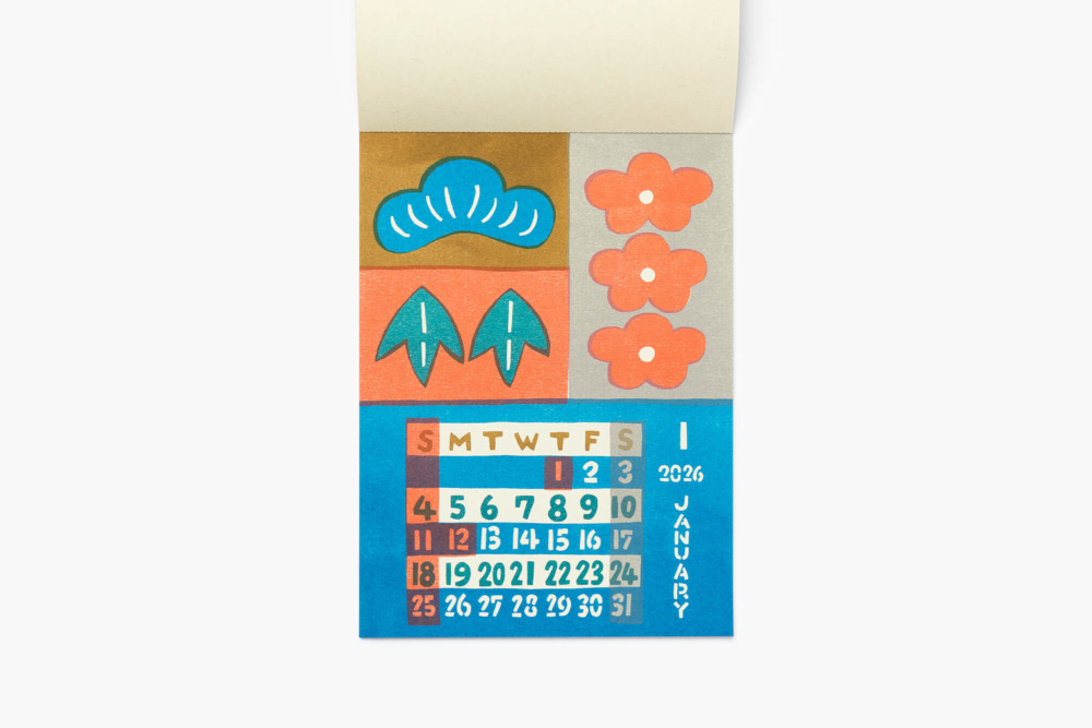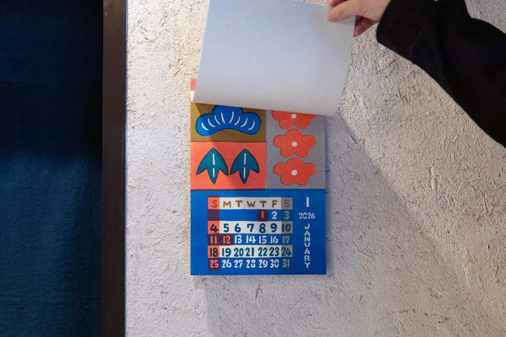 「染めを暮らしの中に」をモットーに、「型染・筒描」と呼ばれる日本の伝統的染色法による作品作りを行なっている「よつめ染布舎」の2026年版カレンダーが今年も発売しました。