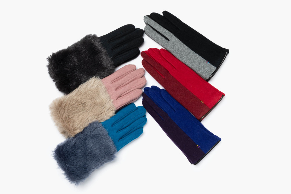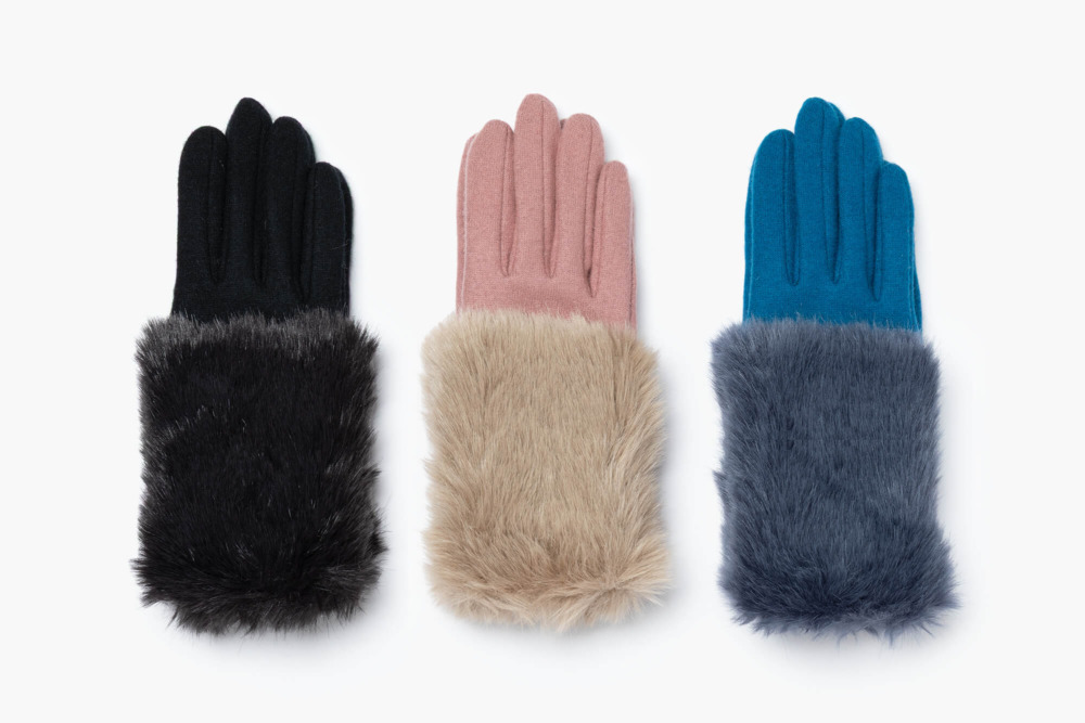 印象的なフェイクファーが 、コートを着たときの袖元のアクセントになる手袋です。
