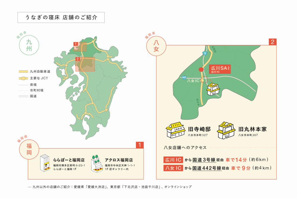 うなぎの寝床は、高速道路 九州自動車道 広川サービスエリア(上り線)の「コネクトコーナー」で商品の提供をはじめます。