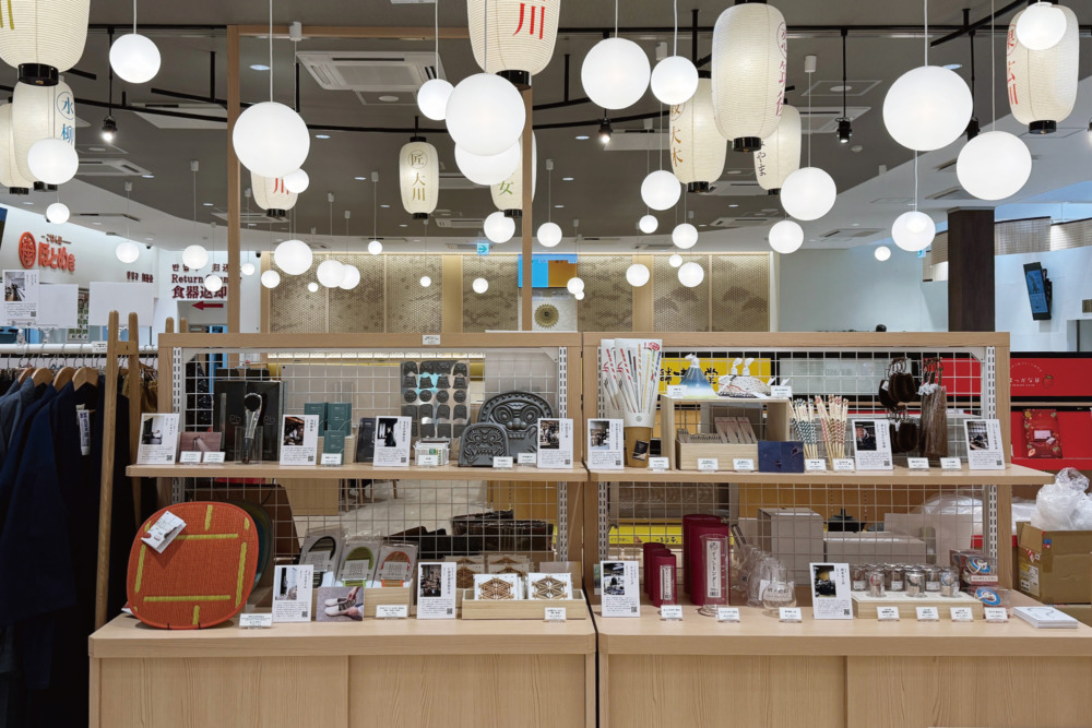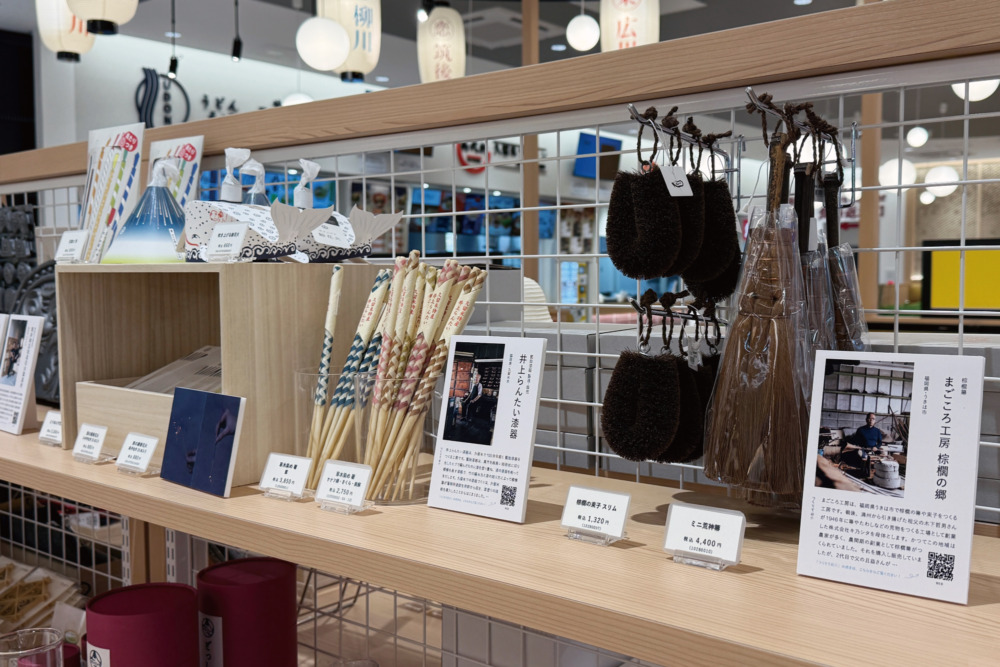 久留米絣、八女すだれ、大川組子、八女提灯などの工芸品を使った、ホッとする素敵な空間となった広川SAに立ち寄ったお客さまと、筑後の土地と人を伝える接点となる場づくりを目指していきます。お近くの方は高速に乗らなくても下道から入ることもできますので、ぜひお立ち寄りください。