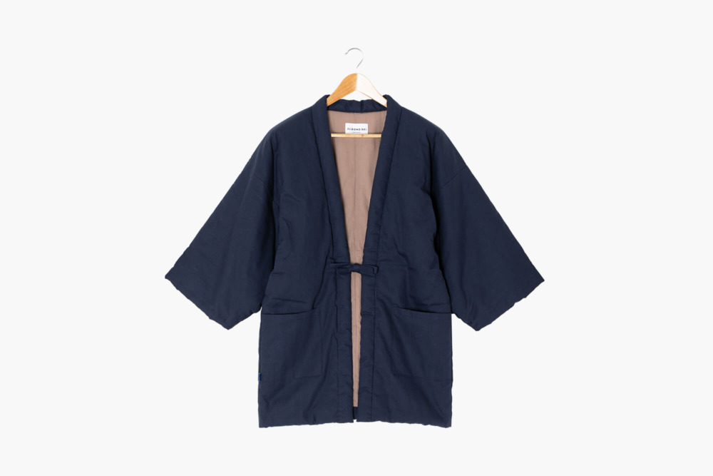 福岡県筑後市で原綿問屋として綿の製造を行う「新川桂」が手がけるオリジナルの綿入れはんてんです。