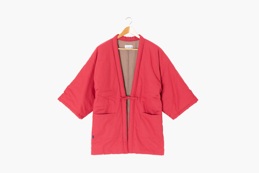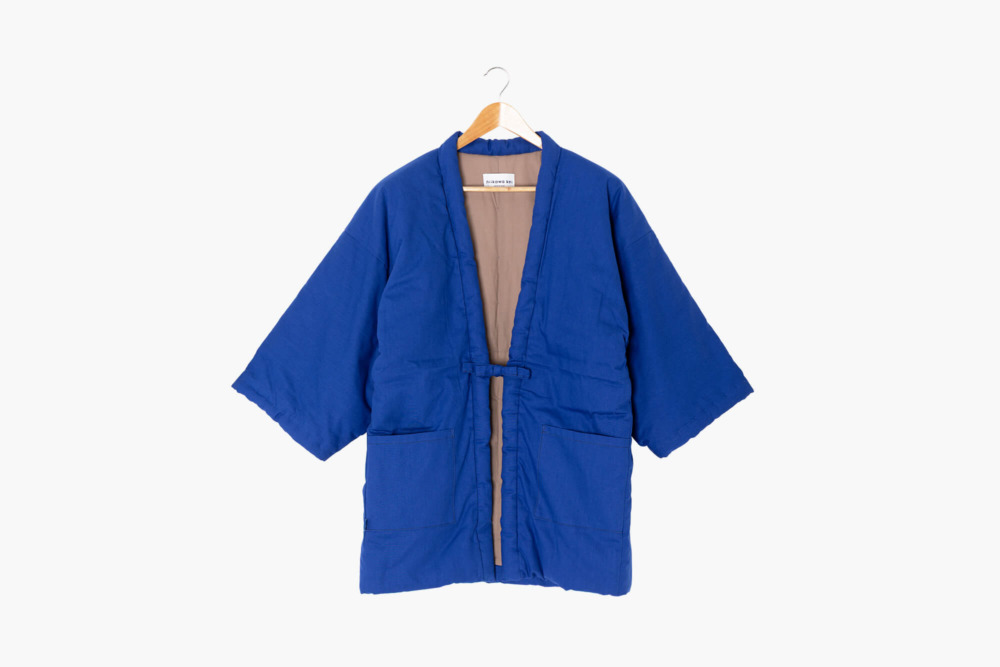 福岡県筑後市で原綿問屋として綿の製造を行う「新川桂」が手がけるオリジナルの綿入れはんてんです。