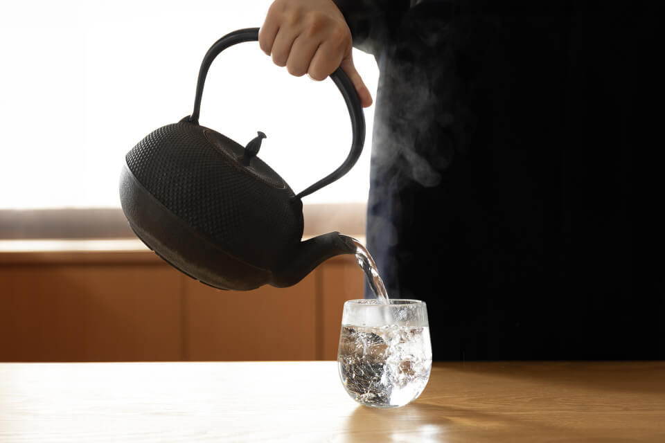 鉄瓶で沸かしたお湯は、温かさだけでなく、水の中に含まれるミネラルが鉄瓶内部に付着することで軟水化し、まろやかで美味しさも特長です。