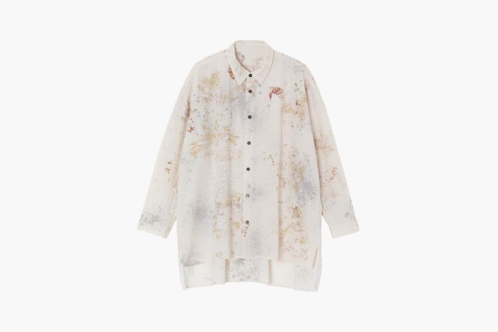 「Harvest=収穫、実り」と名付けられたこのシャツは、自然の中にある植物の花や葉を散らしたような、独特の柄が特徴です。