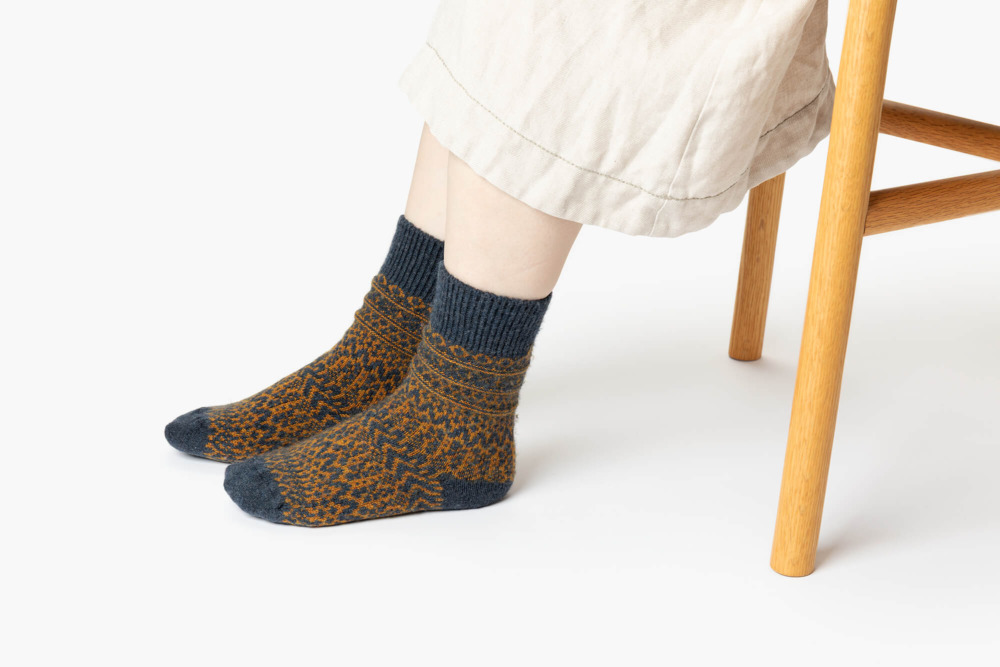 様々なブランドと付き合う中で、素材や価格に徹底的にこだわった自社ブランド「NISHIGUCHI KUTSUSHITA」を設立。古い機械を細かく改造することで量産型の機械では扱いにくい天然繊維を使った靴下を生産しています。履いてから脱ぐ瞬間まで、履く人が気持ちいいと思える靴下を目指しています。