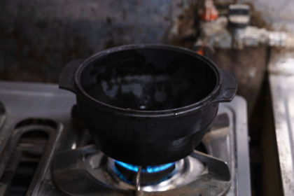 洗浄後は水気を拭き取り、再度火にかけて水分を飛ばします。