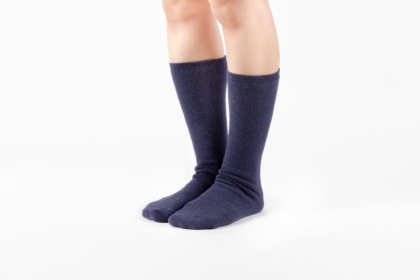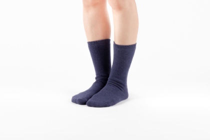 この「TUBE SOCKS パイル」は、全体をパイル編みで編んでいるため、保温性・吸湿性・クッション性に優れ、柔らかで快適な履き心地となっています。また、1足にたくさんの糸(35cm=両足で約90g、45cm=両足で約120g)を使い、ゆっくりと時間をかけて編んでいるため、足をしっかり包み込んでくれる厚みと柔らかさを兼ね備えています。