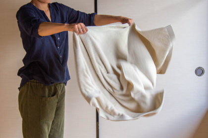 ・干す前に、パイルを立てるイメージでぱたぱたとよく振ってから干すと、やわらかな風合いが長持ちします。