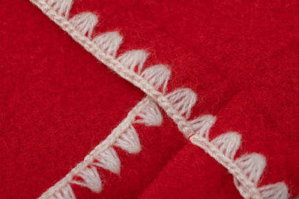 希少な特殊ミシンを使用して一つ一つかがるハマグリ刺繍が施されています。丈夫な刺繍糸を使用することができるため、強度と着心地の良さの両立が実現しています。