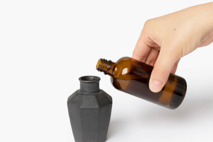 和紙がアロマオイルを吸収することで香りを楽しめます。ポットは長崎の波佐見焼、オイルは国産のオイルとヨーロッパ産のオイルを佐賀で調合したものが使われています。