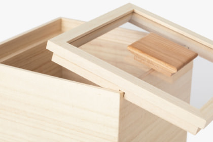 本体:桐(蜜蝋仕上げ) 蓋 :桐(蜜蝋仕上げ)、アクリル 取手:ブラックチェリー(蜜蝋仕上げ) |