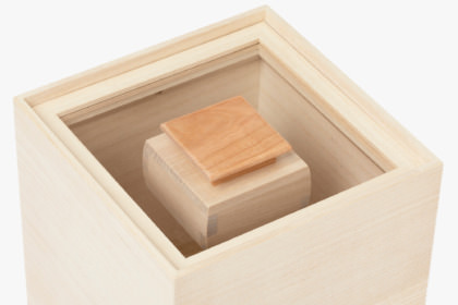 蓋には「四方桟(しほうさん)」という伝統的な桐箱づくりの技術が用いられ、気密性が高く、倒しても蓋がはずれにくい設計となっています。