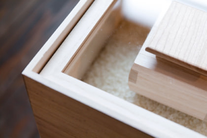 防湿・防虫効果や耐火性をもち、調度品などの保管や包装に長年用いられてきた「桐箱」。その特性と技術を活かしてつくられた米びつです。桐のもつ調湿性と防虫効果でお米の劣化を防ぎ、美味しく保ちます。