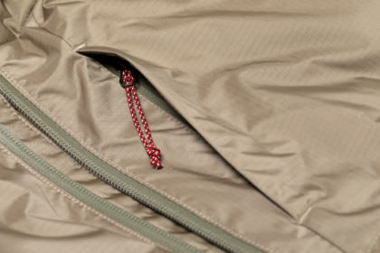 肩周りの稼働がしやすいようラグラン袖を採用し、袖ぐりを広めにして厚着しても窮屈さを感じにくいよう設計されています。大きなポケットや止水ファスナーなど、アウトドア環境を想定された機能的な仕様ですが、全体的にシンプルにまとめられているので、アウトドアでも街中でもシーンを選ばずご着用いただけます。