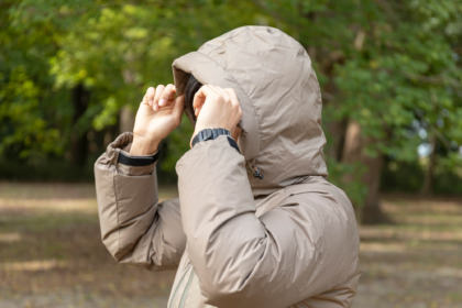 • フードは大きめ設計。ニット帽などの上からでも被りやすい。