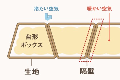 ボックス同士が支え合うことで、羽毛のかさ高さを最大限に引き出し、片寄りを軽減して保温性を高める。 -