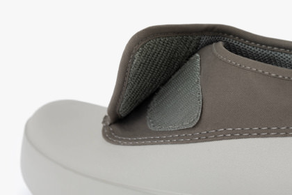 足の固定はマジックテープ仕様で、脱ぎ履きしやすいです。作業時の安全性を配慮し、濡れた場所でも滑りにくいソールを使用しています。ガーデニングや、屋外での水作業、小雨時の外出など様々な場面で活躍してくれます。