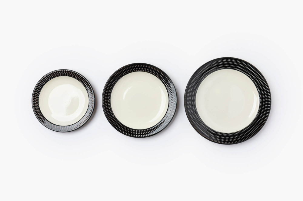 地元で使う日用道具としてつくり続けられてきた小石原焼は、鉋(かんな)や刷毛(はけ)など、生活にある道具を使って表現する幾何学的な装飾が特徴です。手を動かして器をつくる中で自然と生まれた知恵や風土としての模様は、素朴な佇まいでどんな料理にもしっくりと馴染みます。