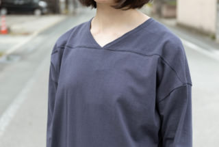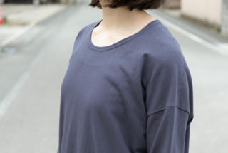 「吊り編み」という製法でつくられているため、型崩れしにくく、ふんわりとした肌触りです。さらに、着続けていくうちにだんだんと体に馴染み、生地にしっとり感がうまれていきます。 Tシャツ地(カットソー生地)なので、重ね着がしやすく、季節を問わず着ていただけます。