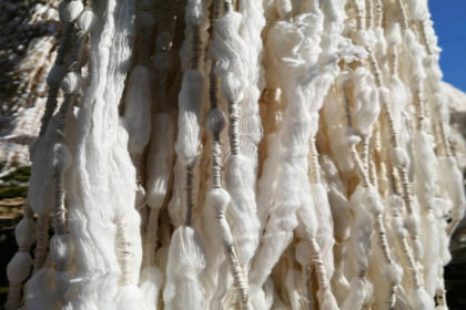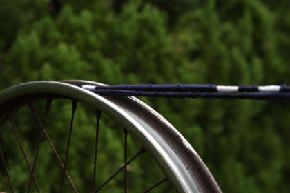 内部に染料が入らないよう何重にもくくり糸を巻きつけるため、くくった箇所によってくくり糸の染まり方にムラが生まれる。