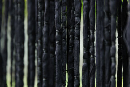 久留米絣の多種多様な柄や模様は、糸を縛って色を染め分ける「くくり」という工程で表現されています。このとき、糸を染めない箇所を縛る糸がこの「くくり糸」です。
