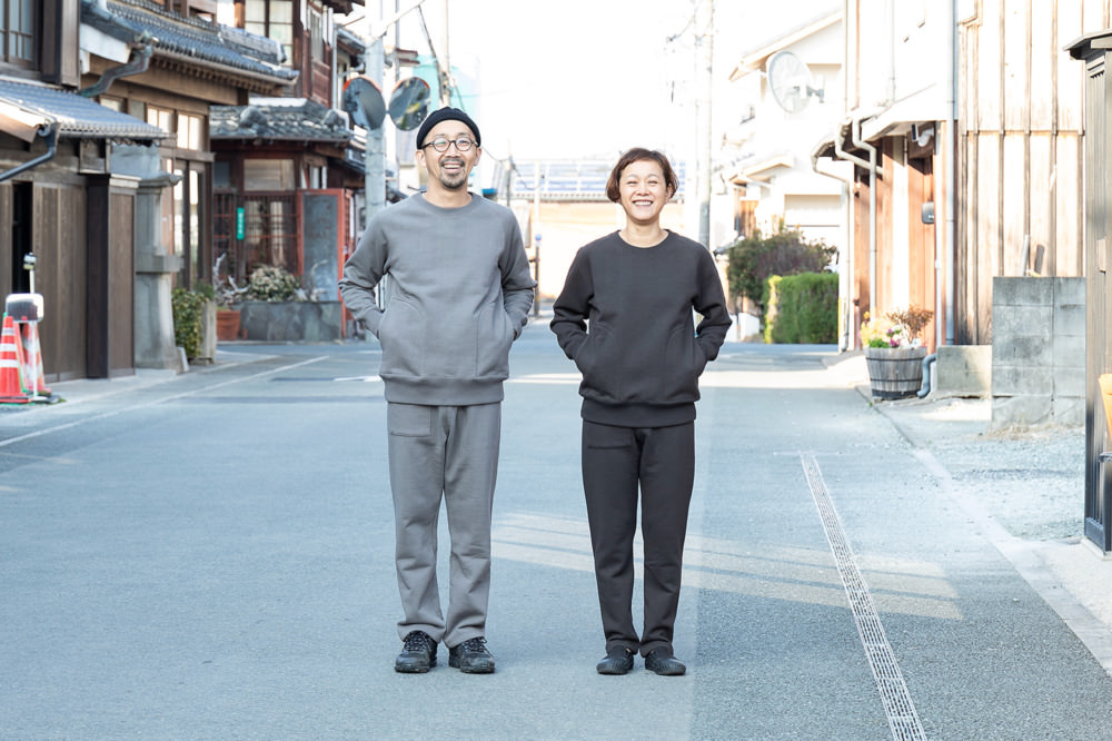 吊り編みの裏毛を使用しています。100年以上の歴史を持つ吊り編み機は、現在和歌山の数件の会社でしか稼働していません。1時間に1mほどの速さで編むため、糸に負荷をかけず、空気を含んでいるかのようにふっくらとしたやわらかさを持ちながら、丈夫な編地になります。編地は、和歌山の東紀繊維に依頼し、秋田で縫製しています。