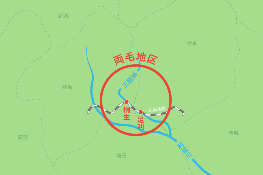 渡瀬川流域を中心に「太田市・桐生市・館林市・みどり市・足利市・佐野市」などの地域が連なる両毛地区は、水資源が豊富で古くから繊維業が盛んな産地です。消費地・江戸 (東京) との交易も盛んに行われ、明治期には両毛線などの鉄道も整備されたことから商流が飛躍的に発展。かつては絹織物の輸出で栄えましたが、現在は複合ジャカード織物、ニット・縫製・刺繍・染色整理業など、テキスタイルにまつわるあらゆる仕事が集約されています。