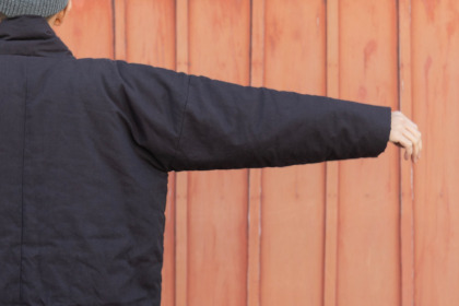従来のはんてんのたっぷりした袖幅をスリムに。もたつかず肩稼働しやすい。