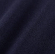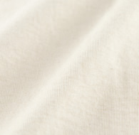 16番単糸という太さの綿糸を使用し、編目をしっかりと詰めて編んでいます。ムラ感のある表情で、【30】より厚みがあり、しっかりとした生地感です。着ていく毎に肌に馴染むような経年変化を楽しめます。